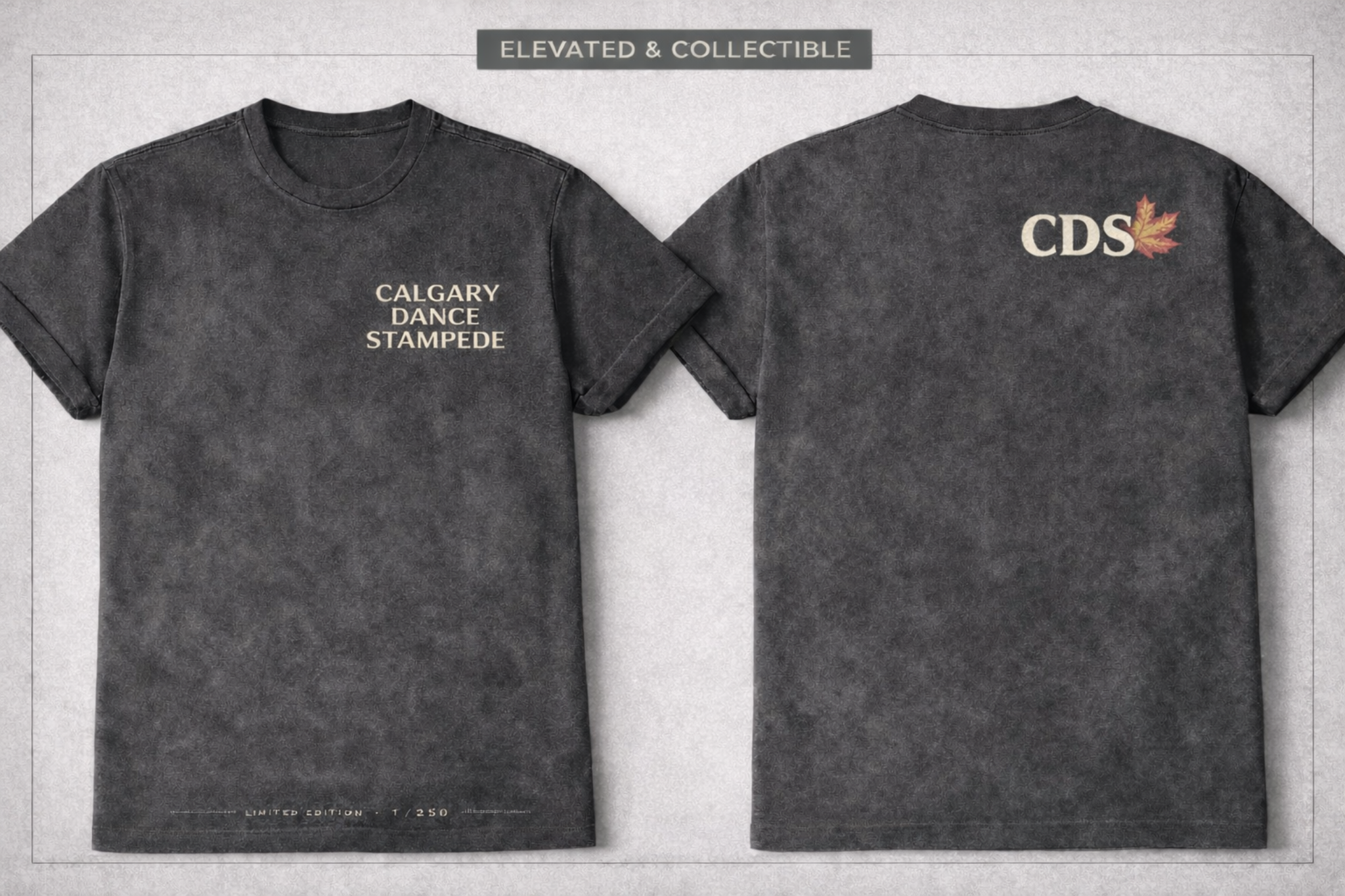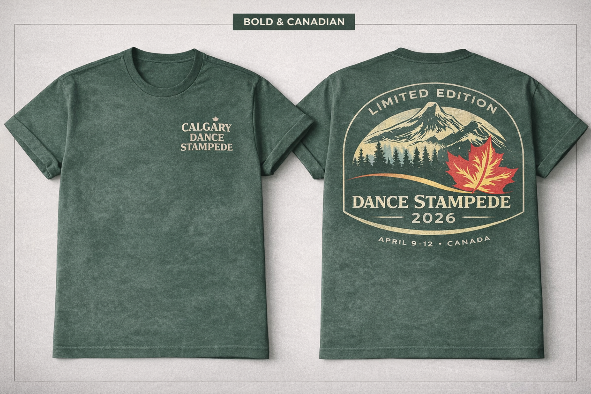 Our official 2026 Calgary Dance Stampede event shirt celebrates the spirit of Canada, the Rocky Mountains, and the incredible dance community that gathers here every spring.